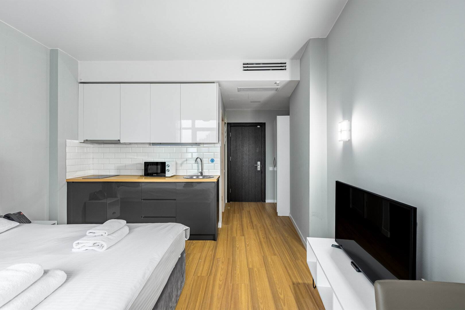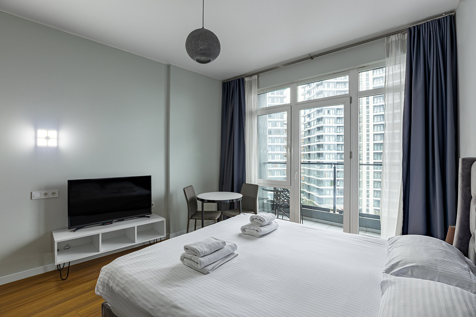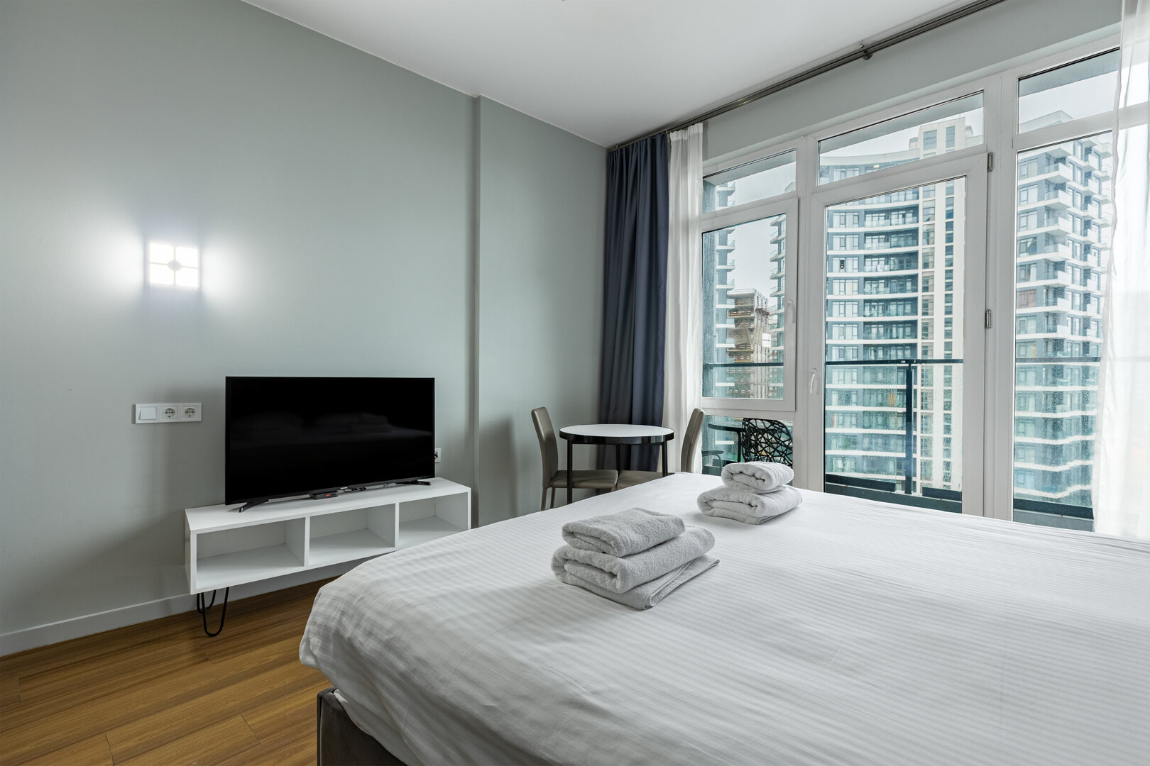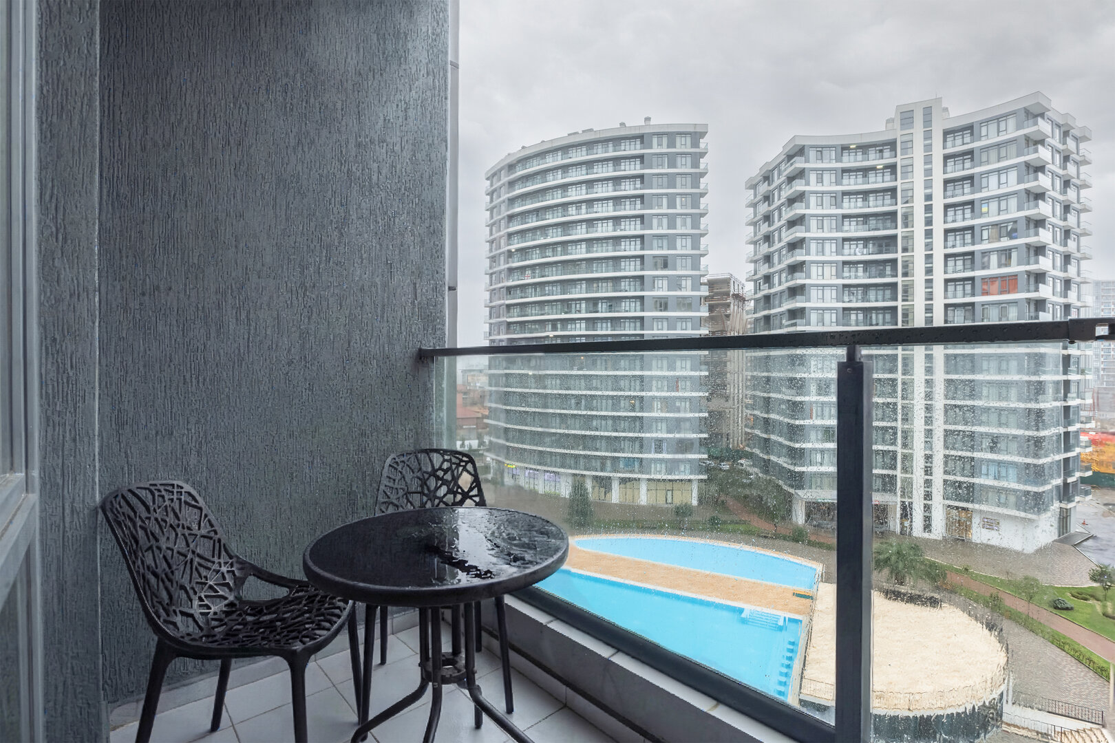 Wake up to a beautiful sea and pool view in this modern, fully equipped apartment. Perfect for couples, business travelers, or a relaxing holiday. Enjoy fast Wi-Fi, a comfortable bed, and a stylish living space designed for comfort. Restaurants and cafés are located directly in the building, and the beach is just a short walk away. The perfect place to enjoy Batumi and the Black Sea.
